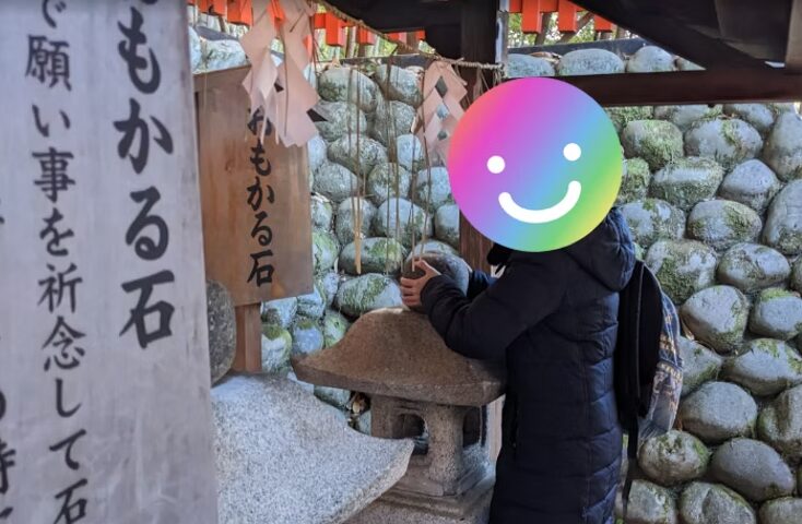 念じた後、持ち上げた石が軽ければ願いが叶うといわれている、「おもかる石」がありました。2つあるうち、右側の石を持ち上げたが 軽かった。左の方が重いのかもしれない。