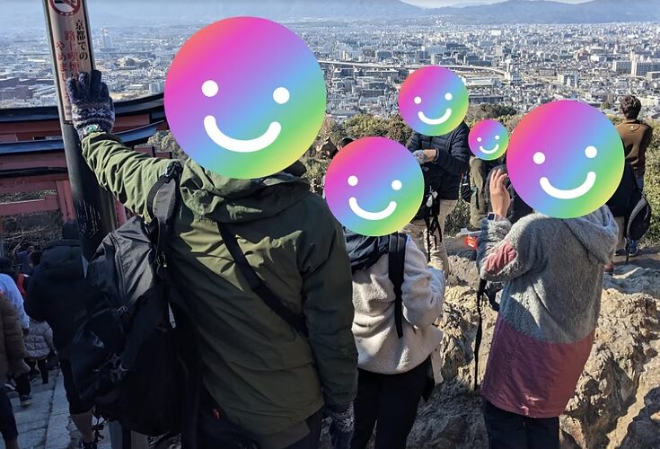 集合 9:30 伏見稲荷大社 大鳥居の下(鳥居の左柱)→本殿参拝→千本鳥居→稲荷山・一ノ峰(上社神蹟) →四ツ辻 →東福寺方面 →天皇御陵 →東福寺周辺ランチ →京都駅